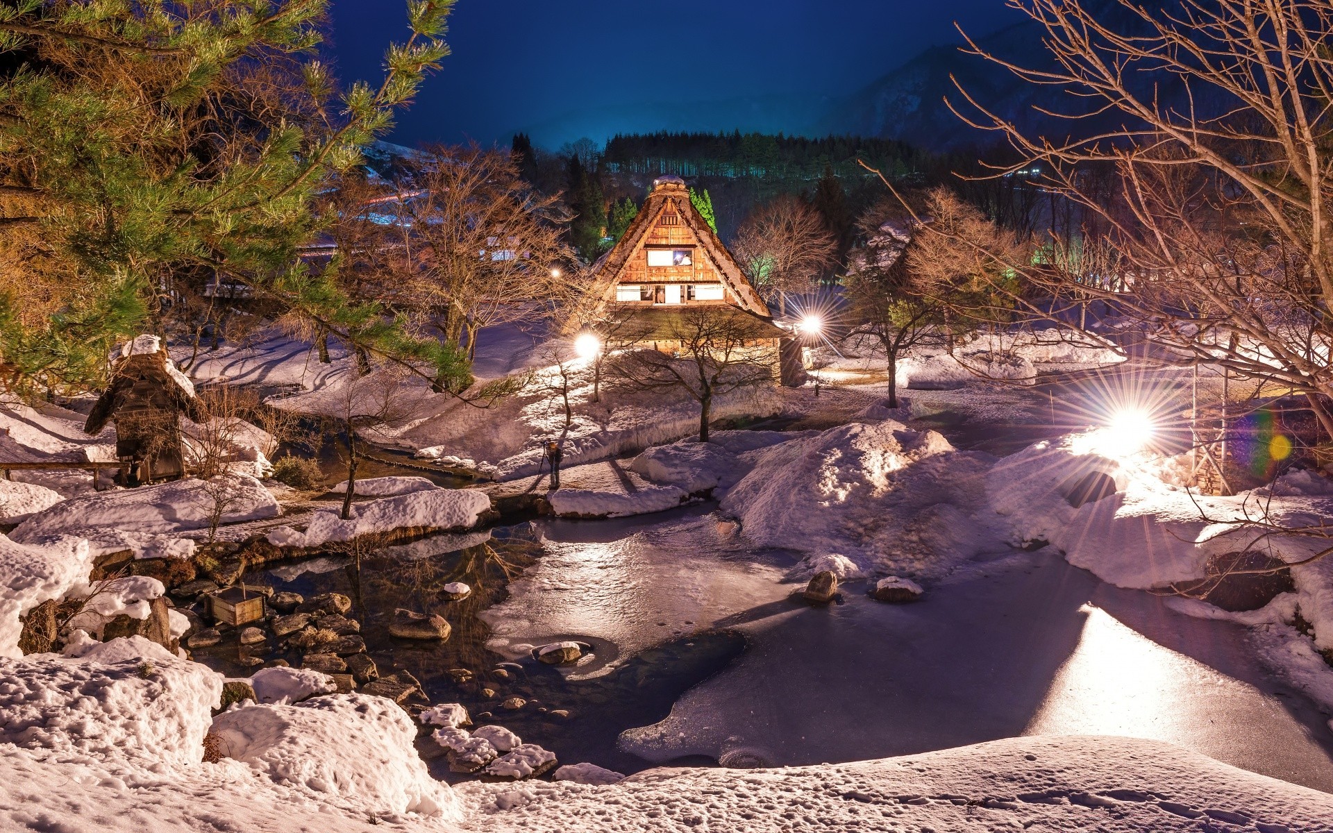 Los árboles amarillos de las montañas de fondo se reflejan en el aguaLos árboles amarillos de las montañas de fondo se reflejan en el agua