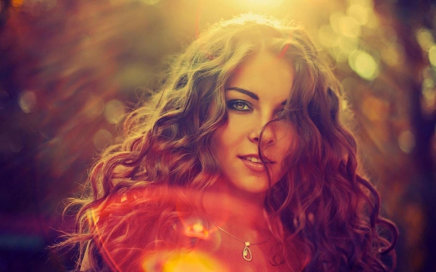 Chica con gotas de fuego en el pelo en el castillo