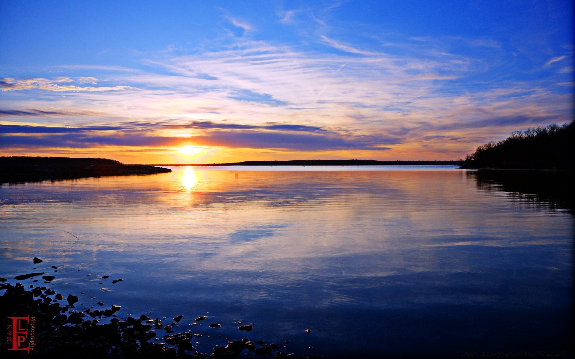 Paisaje nocturno del gran lago