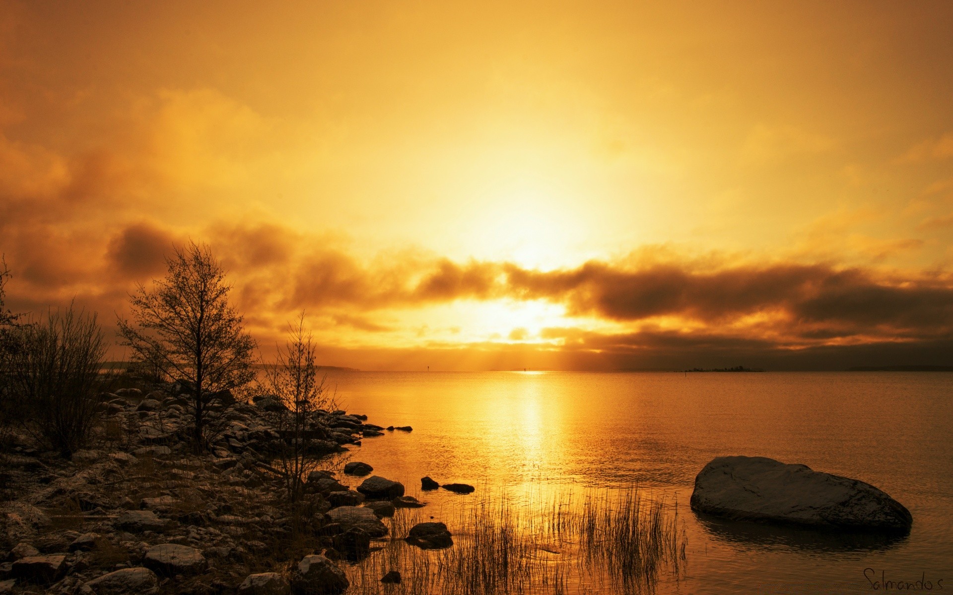 Hermosa puesta de sol junto al lago