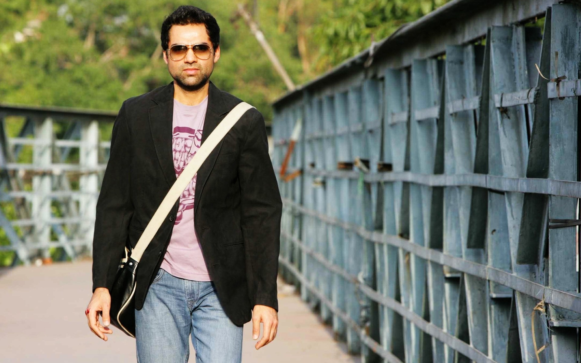 Musculoso atleta masculino de edad con pañuelo rojo y gafas de color oscuro