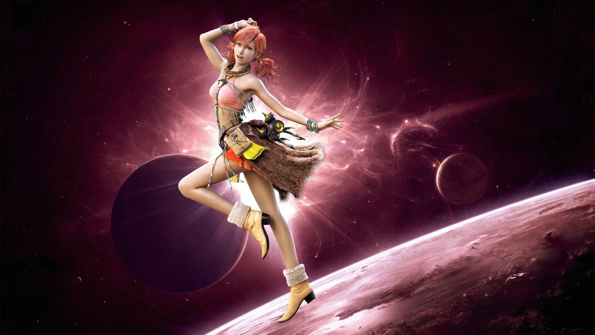 Dibujado a mano animeshnaya chica caminando en la Luna