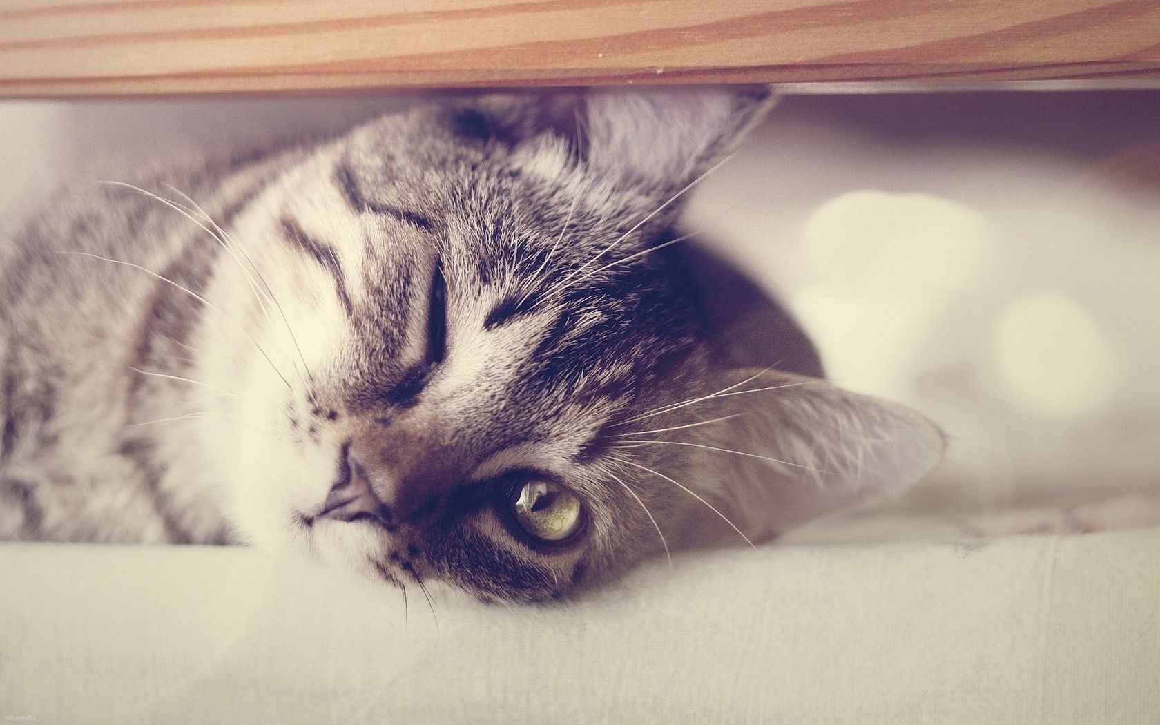 Lindo gatito gris con lazo rojo durmiendo en una Caja