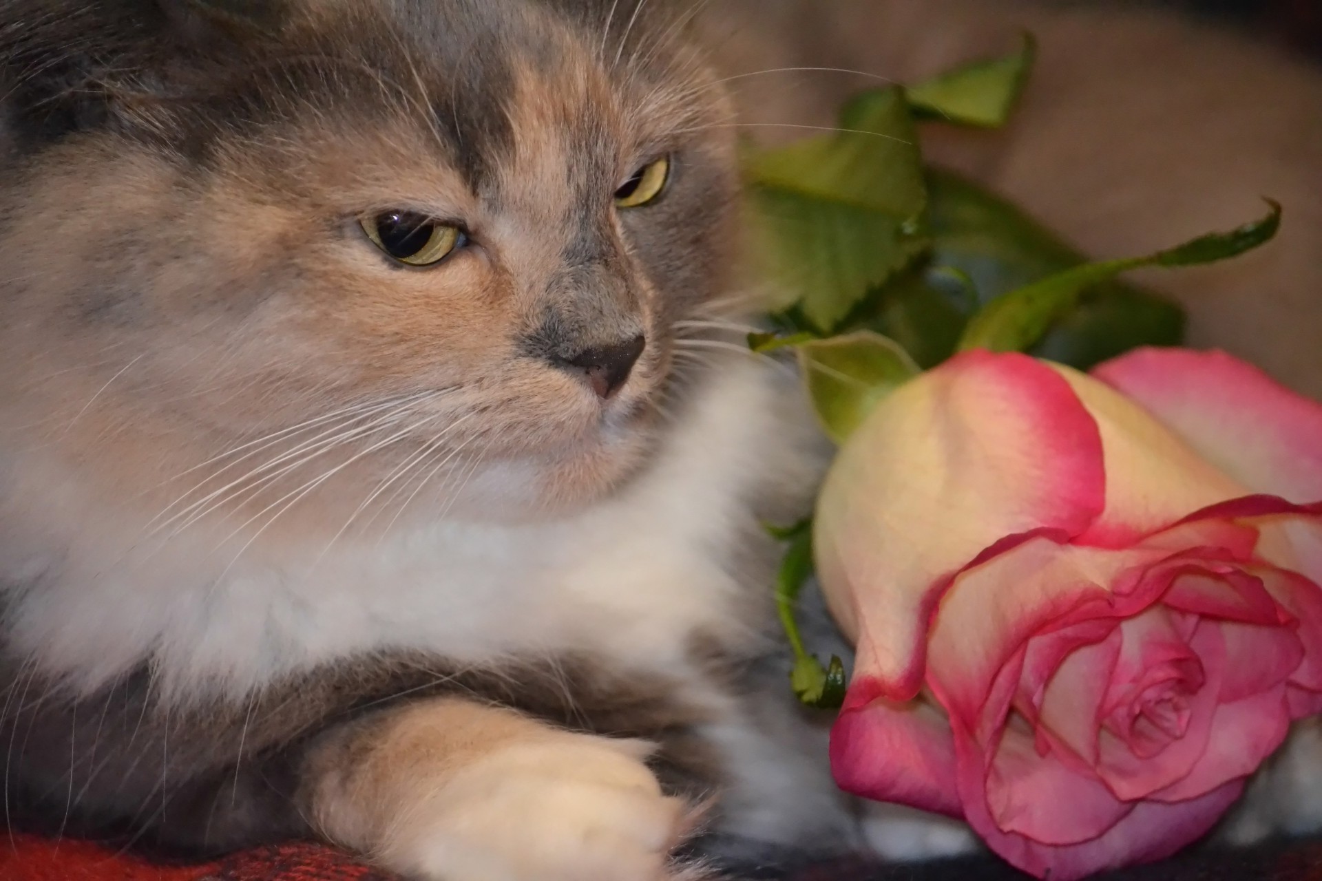 Gato y gato sable ojos verdes ojos azules sombrero de pluma