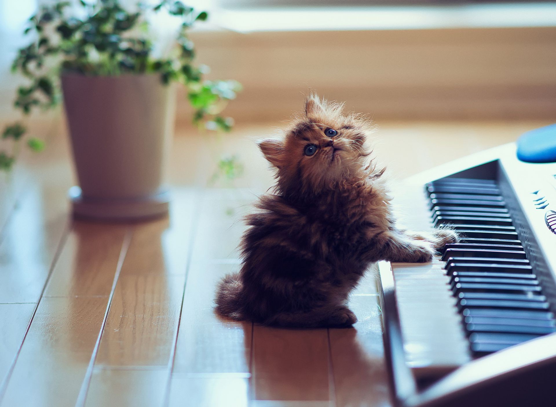 Gato en el interior tocando el sintetizador
