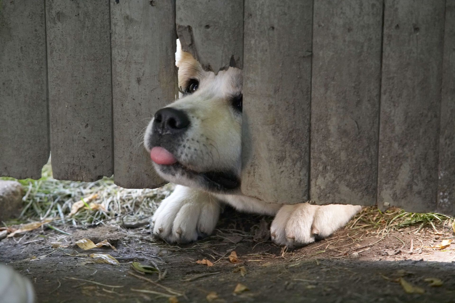 Divertido perro sale de la valla