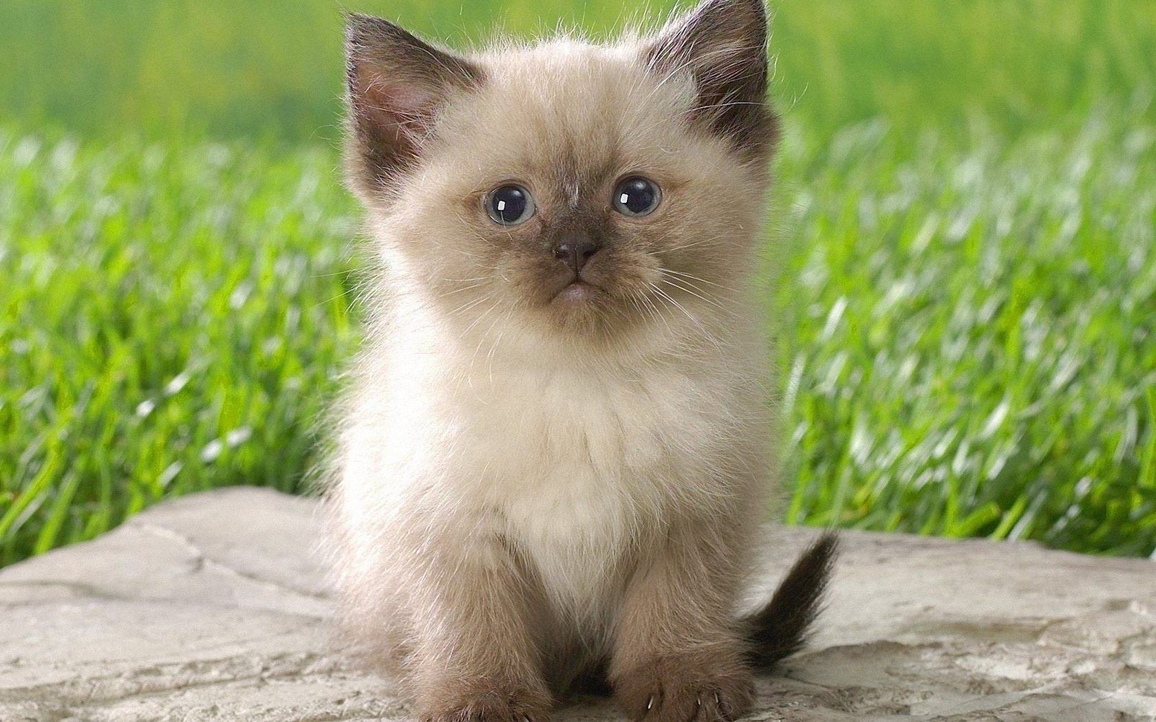 Lindo gatito y hierba verde