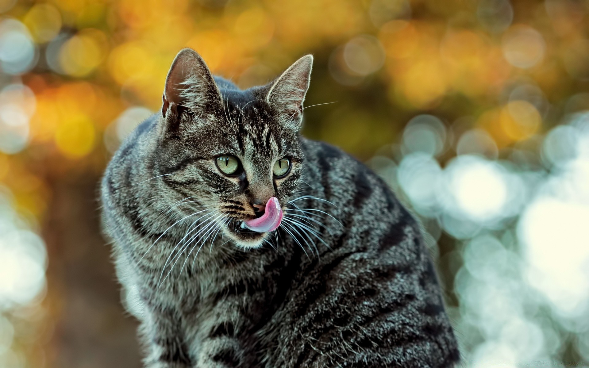 El gato se lame y Mira a lo lejos