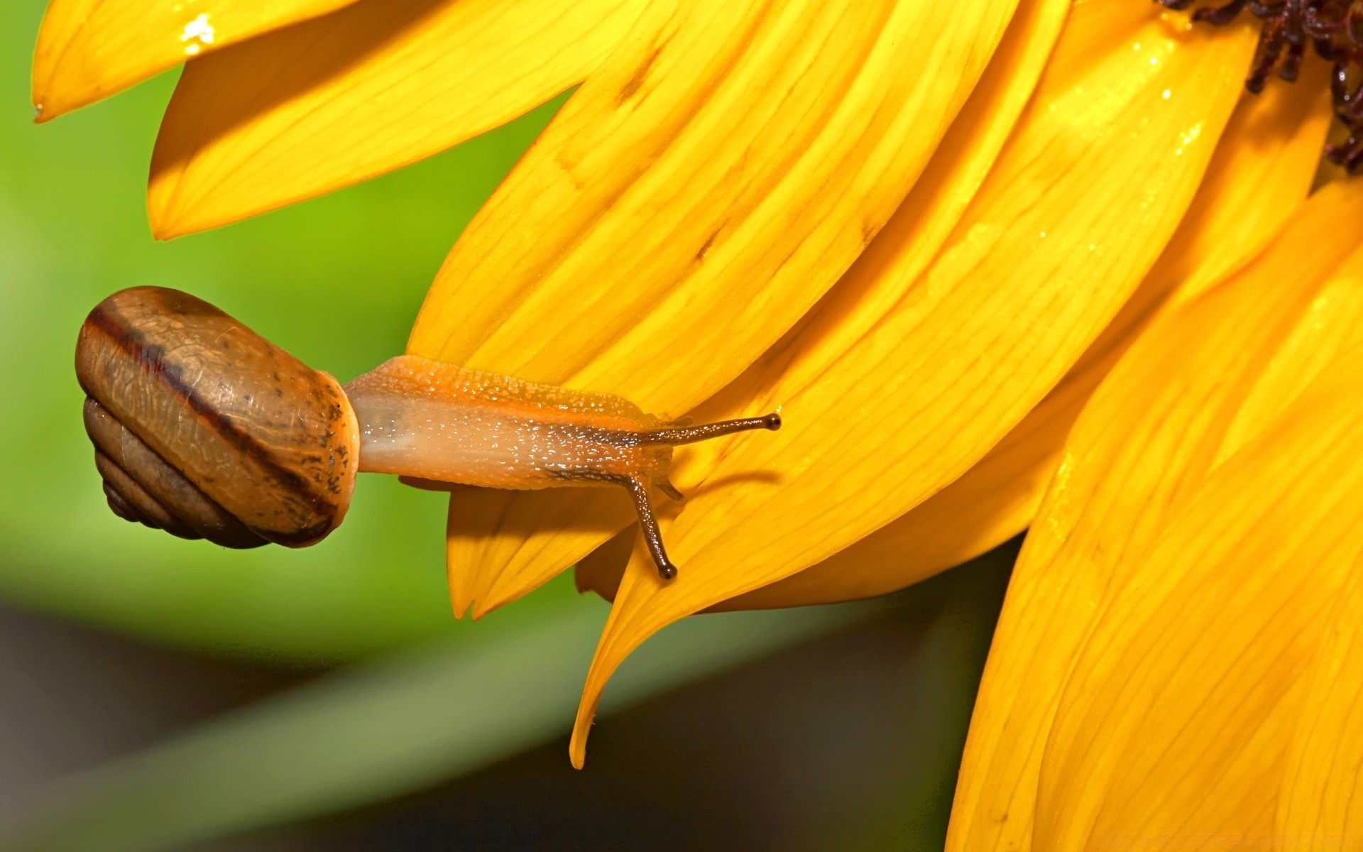 Caracol grande en una flor amarilla