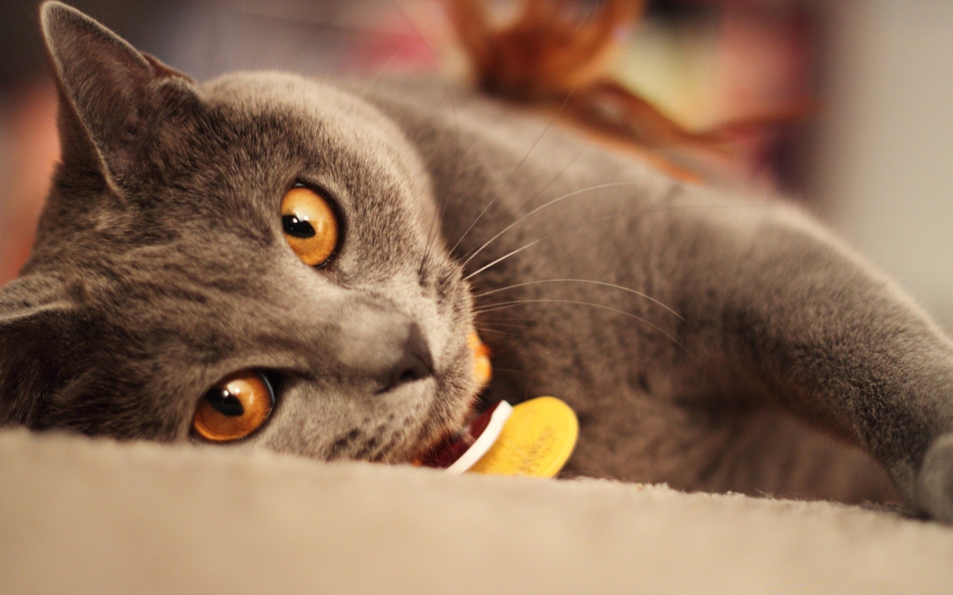 El gato se acuesta con los ojos cerrados