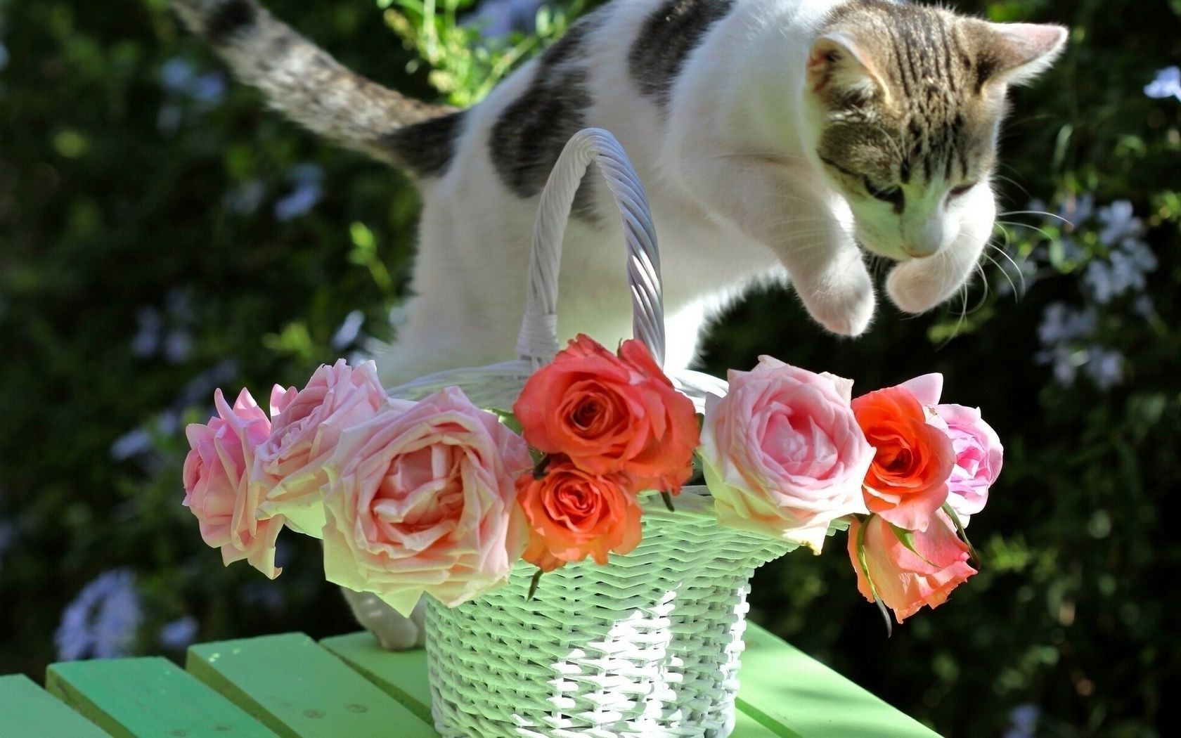 Gato de dibujos animados sale de la Caja con una pistola láser