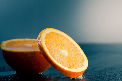 Una rodaja de naranja cayó en un vaso de agua