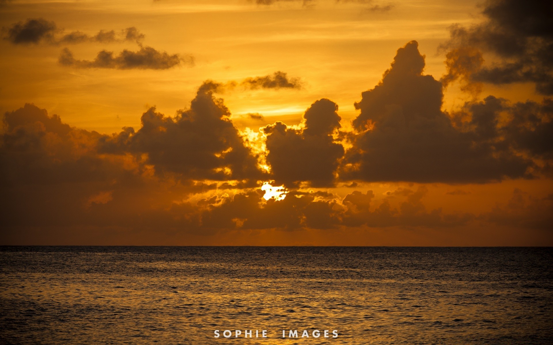 Puesta de sol naranja caliente sobre el mar de la tardePuesta de sol naranja caliente sobre el mar de la tarde