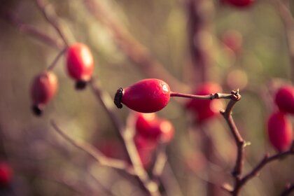 Baya roja en una rama en otoño