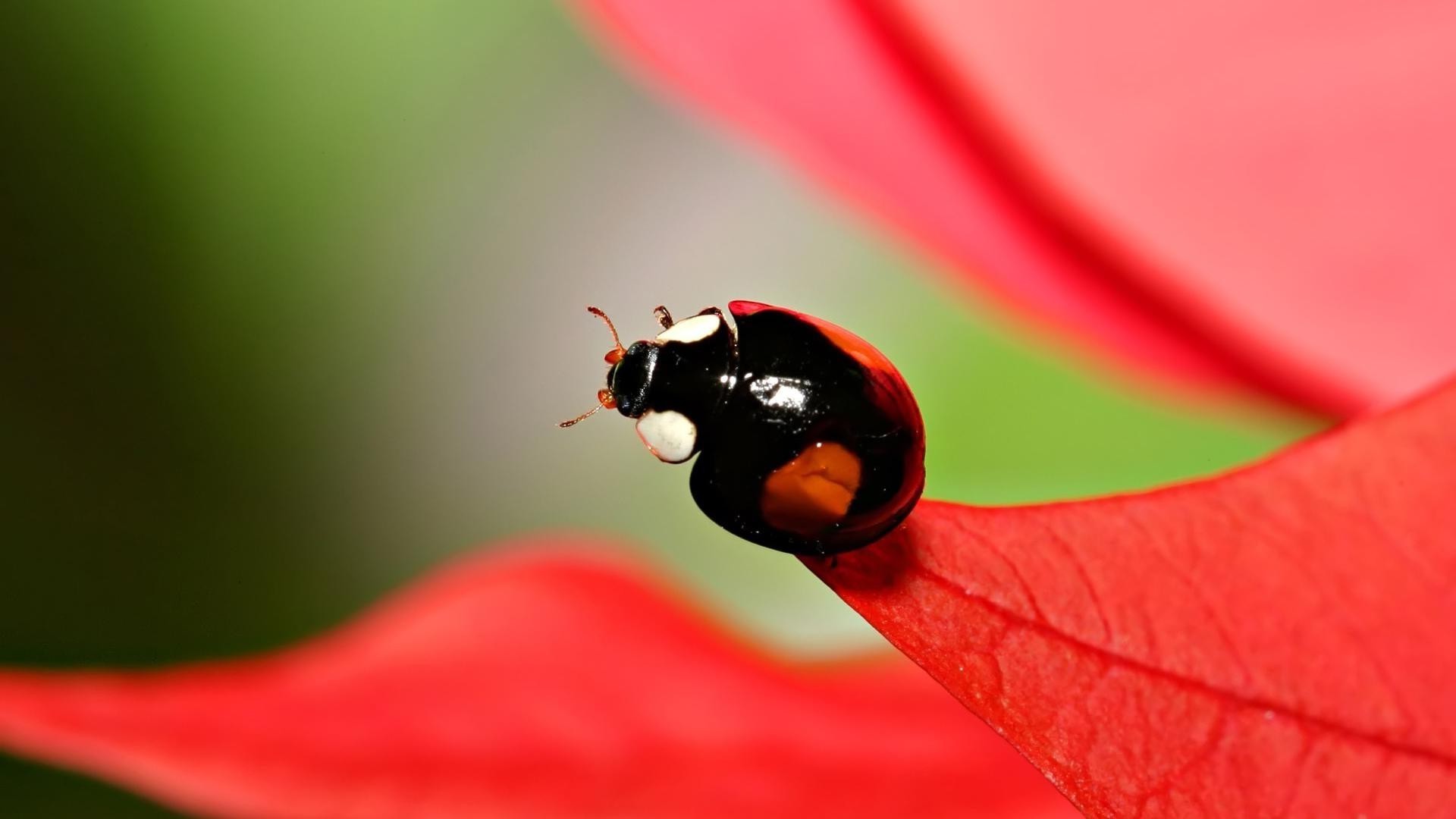 Mariquita en la hoja roja