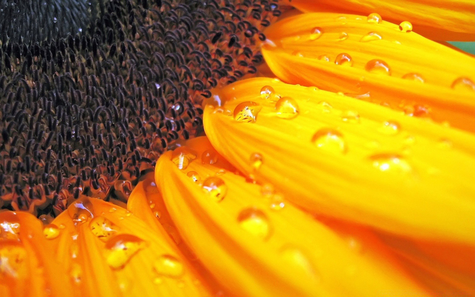 Pintura en una gota. Macrofotografía. Girasol en una gota