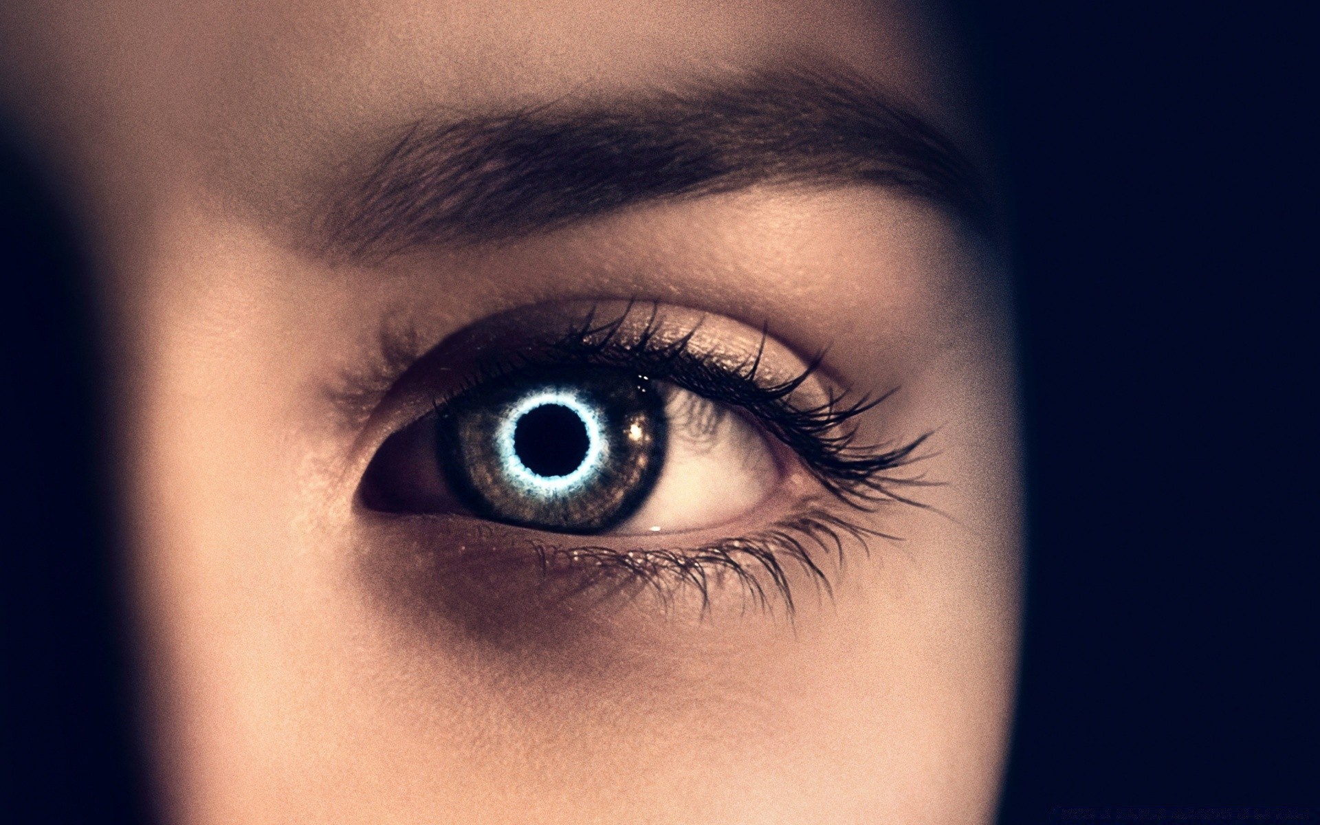 Retrato en blanco y negro con globo ocular y pestañas
