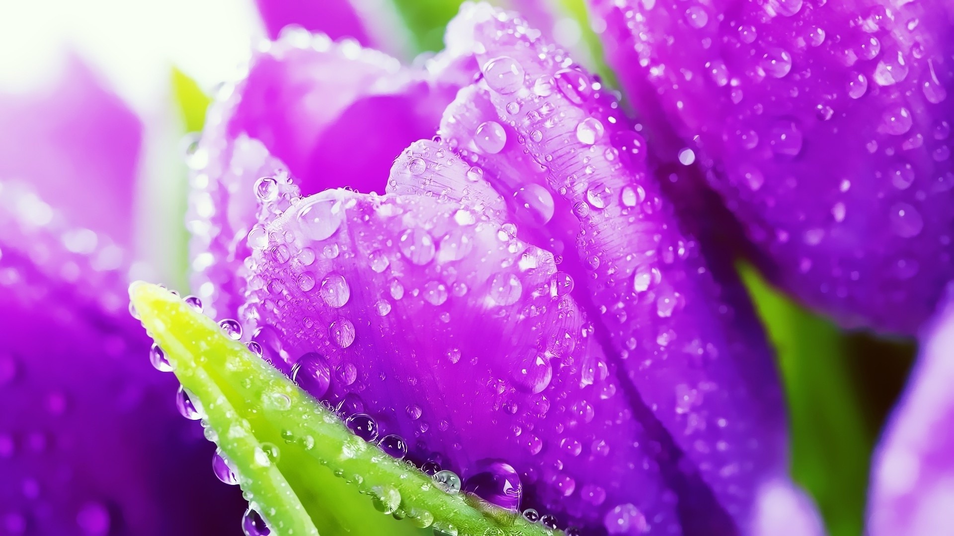 El tulipán se acerca a las gotas de rocío