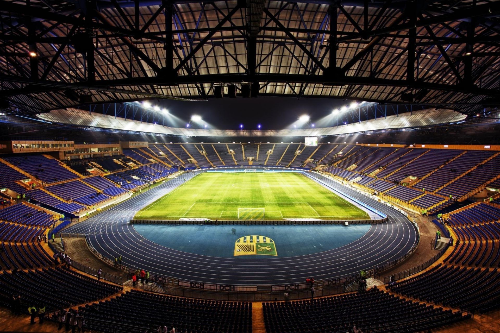 Estadio fútbol final luz