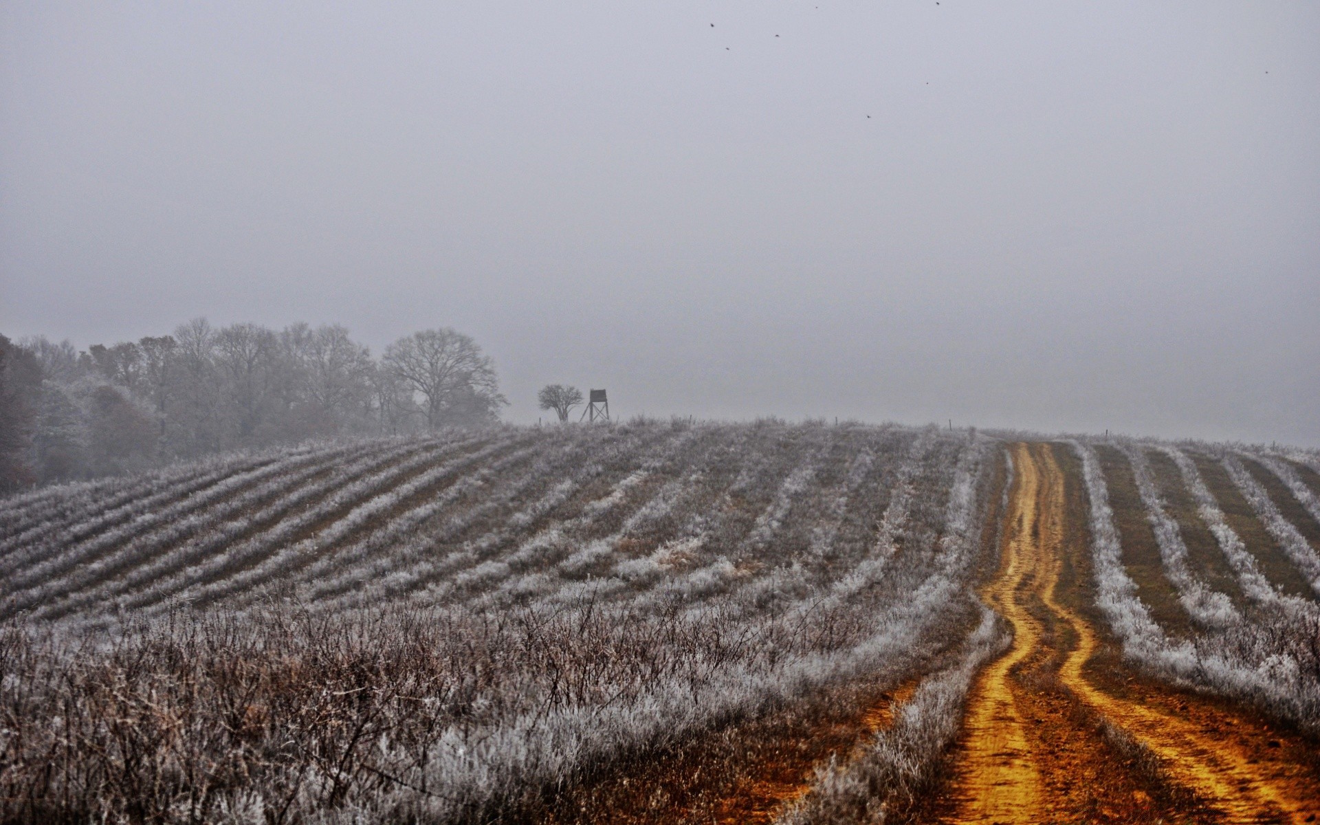Foto en blanco y negro de las granjas cultivadas paisaje