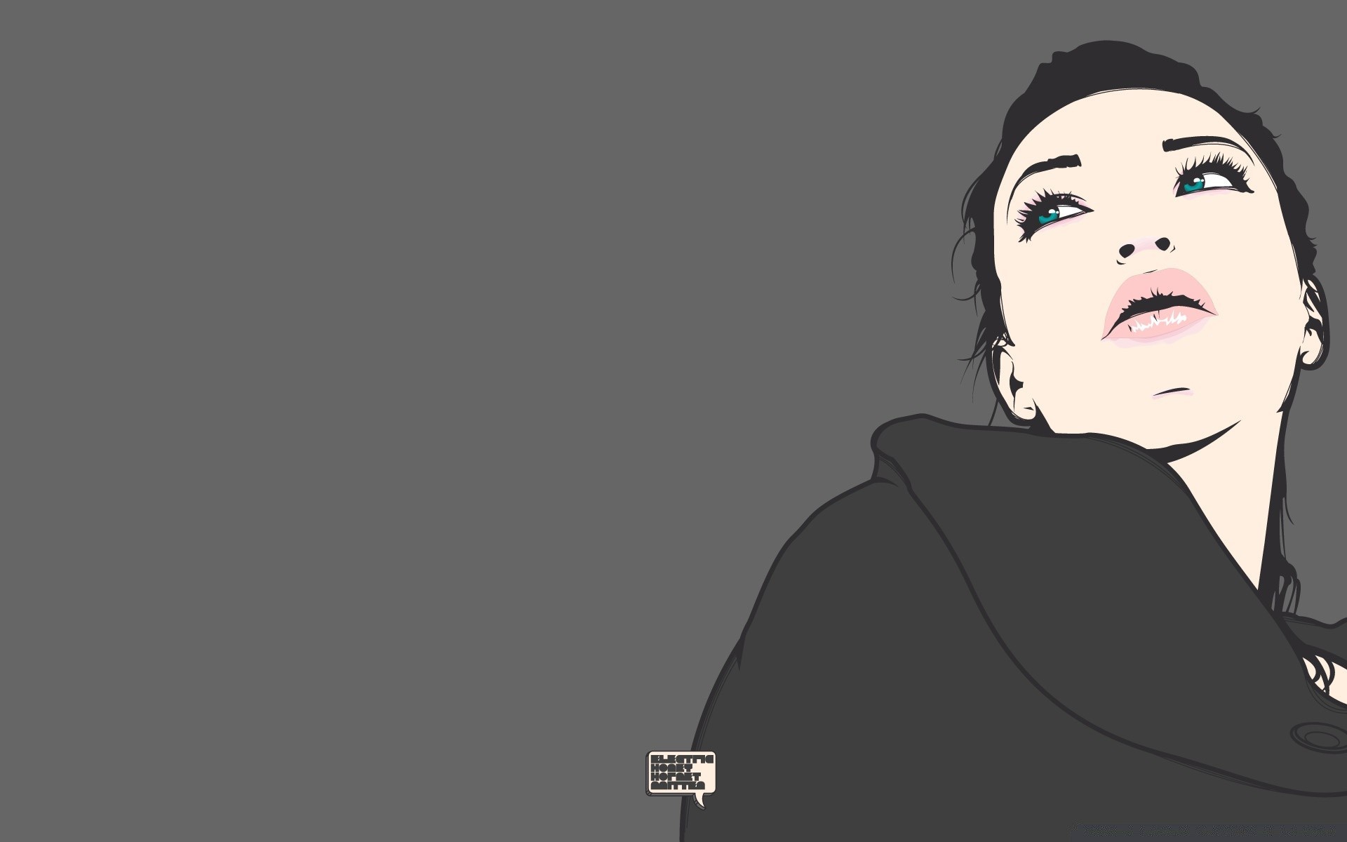 Gráficos vectoriales inscripción y cara humana fondo gris
