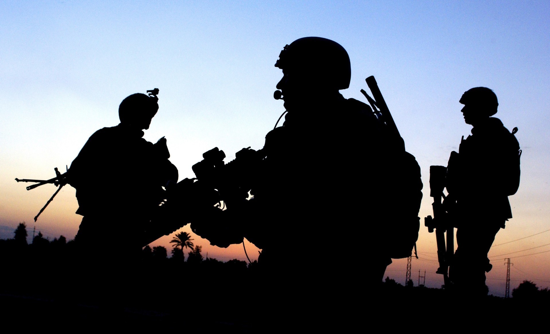 Tres hombres militares con armas