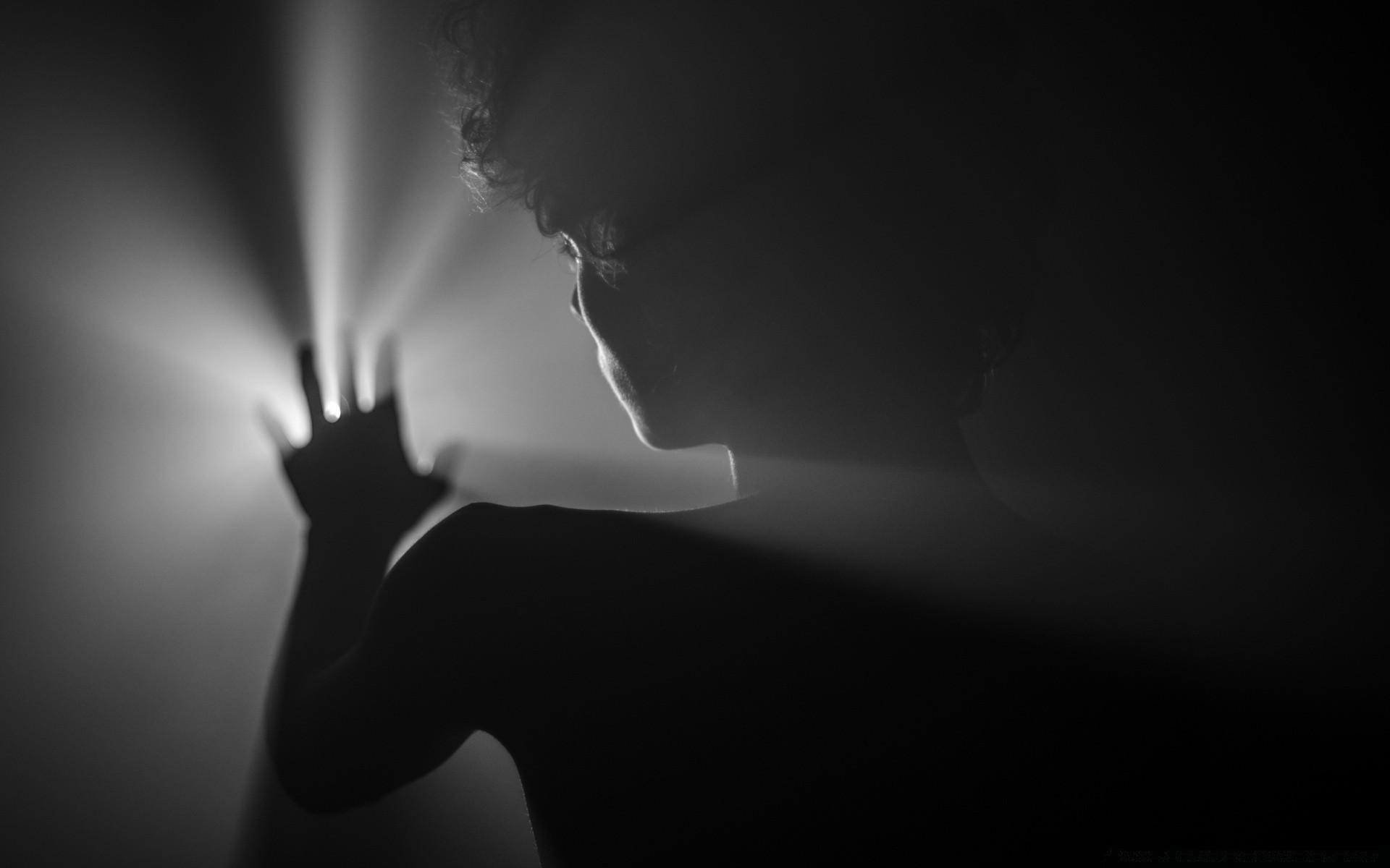 Silueta humana que cubre la fuente de luz con la mano