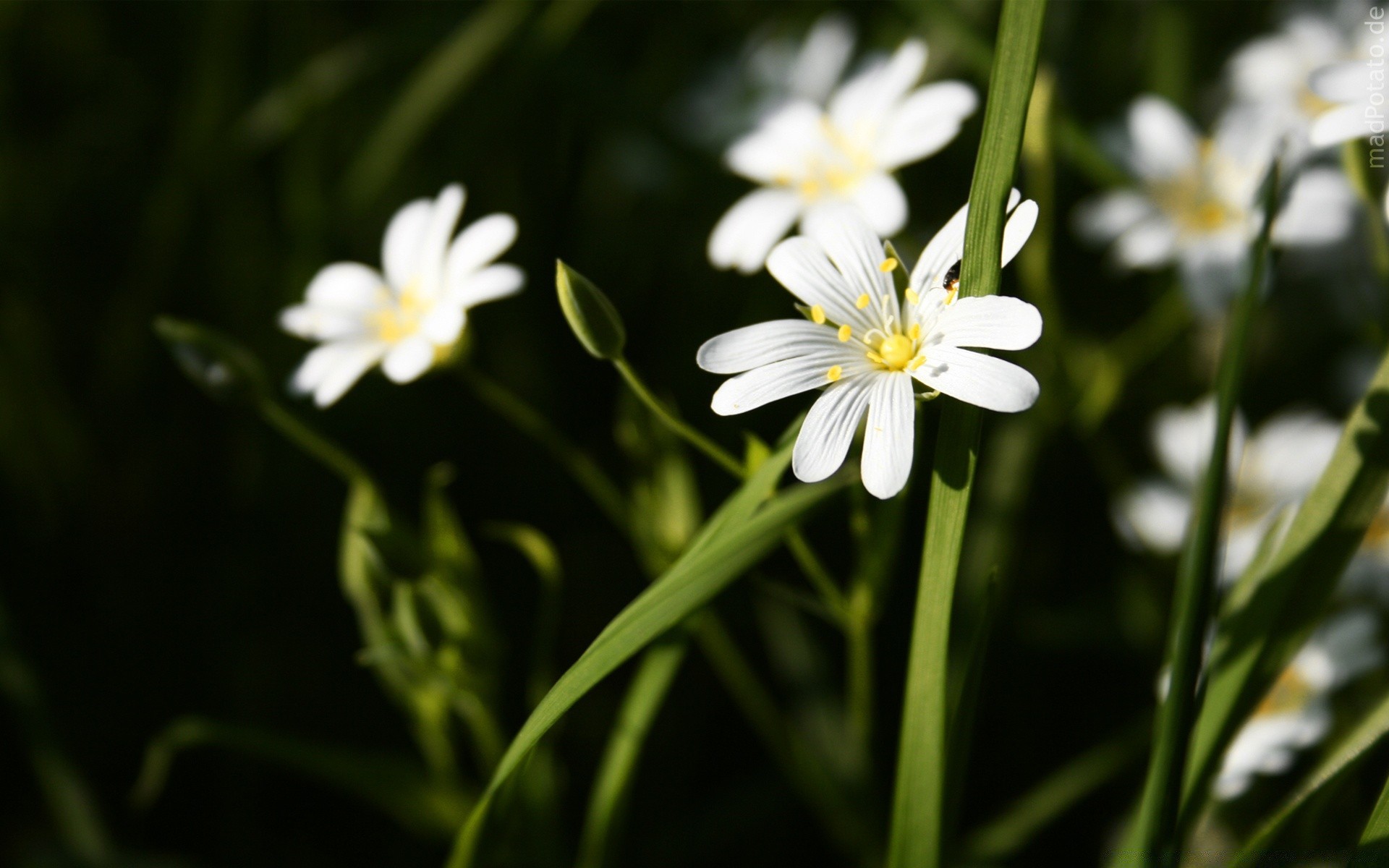 Hermosas flores blancas sobre un fondo de vegetación