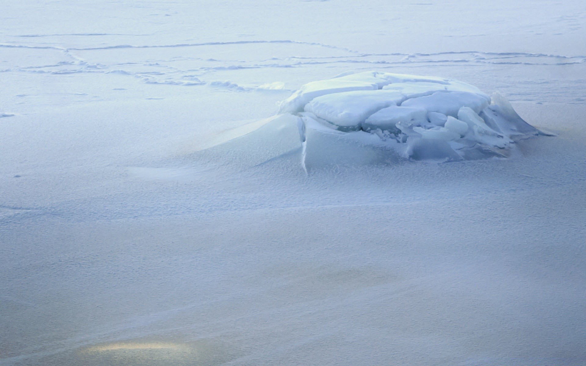 Bloques de hielo en la luz del sol contra el fondo de las montañas y el agua