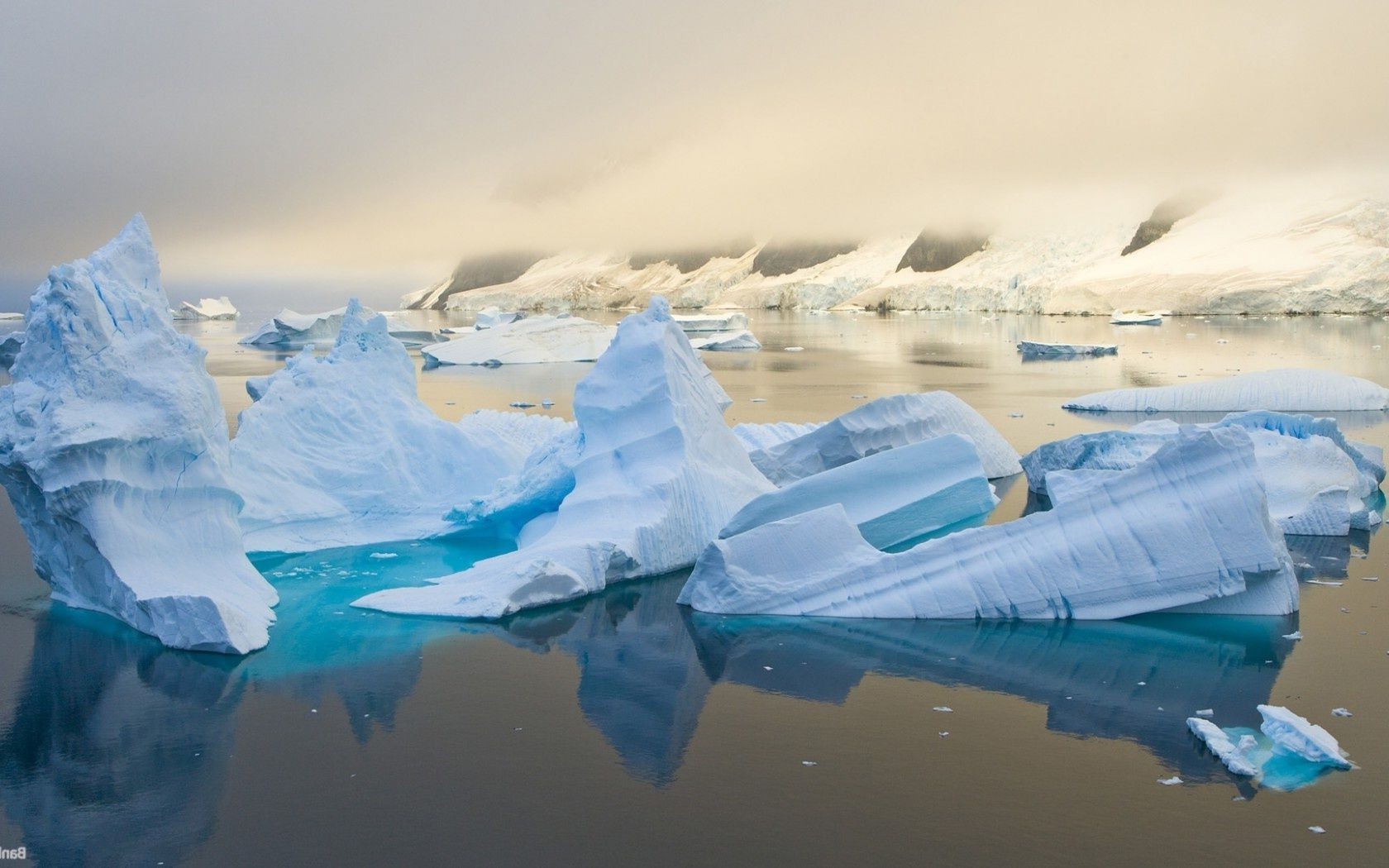 Paisaje de rocas congeladas en el hielo. Puesta de sol en el mar de invierno