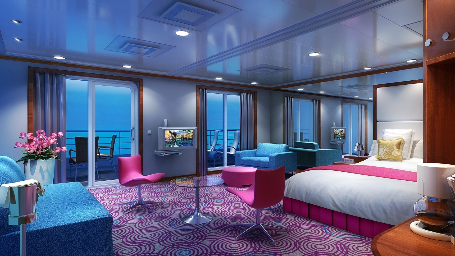 Excelente interior moderno de la habitación. Muebles mínimos, gran color