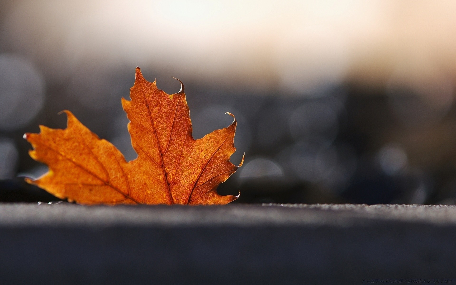 Hoja de arce sobre fondo borroso
