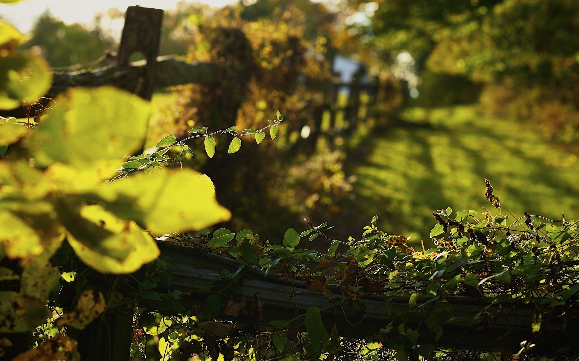 En el agua, muchas hojas de nenúfares y peces nadan cerca