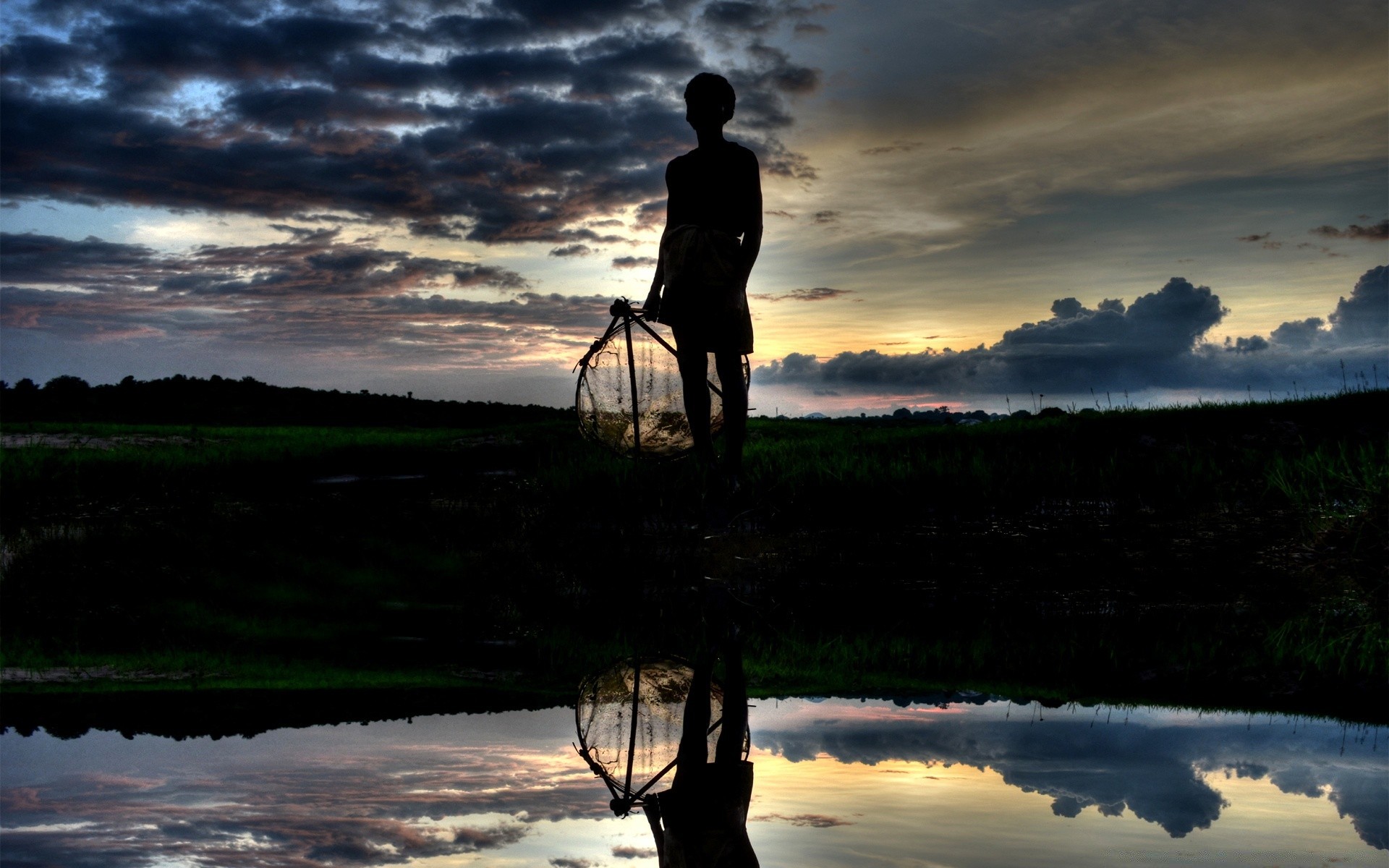 Hombre al atardecer junto al agua
