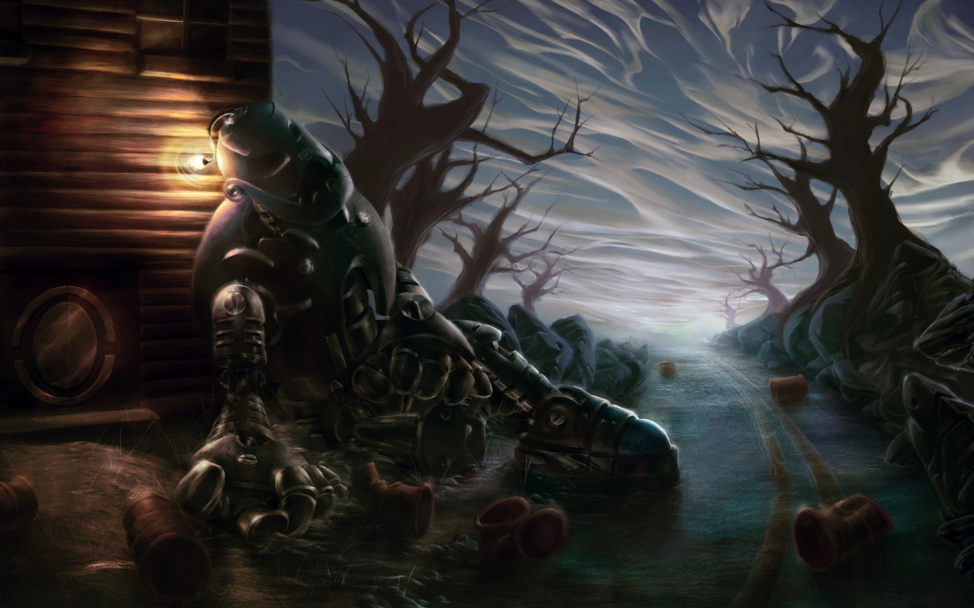 El hombre de la máscara de gas de pie en el fondo amarillo