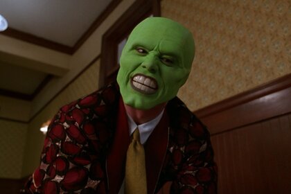 Mujer pelirroja con máscara de iron man en sus manos. lumbreMujer pelirroja con máscara de Iron Man en sus manos. Lumbre