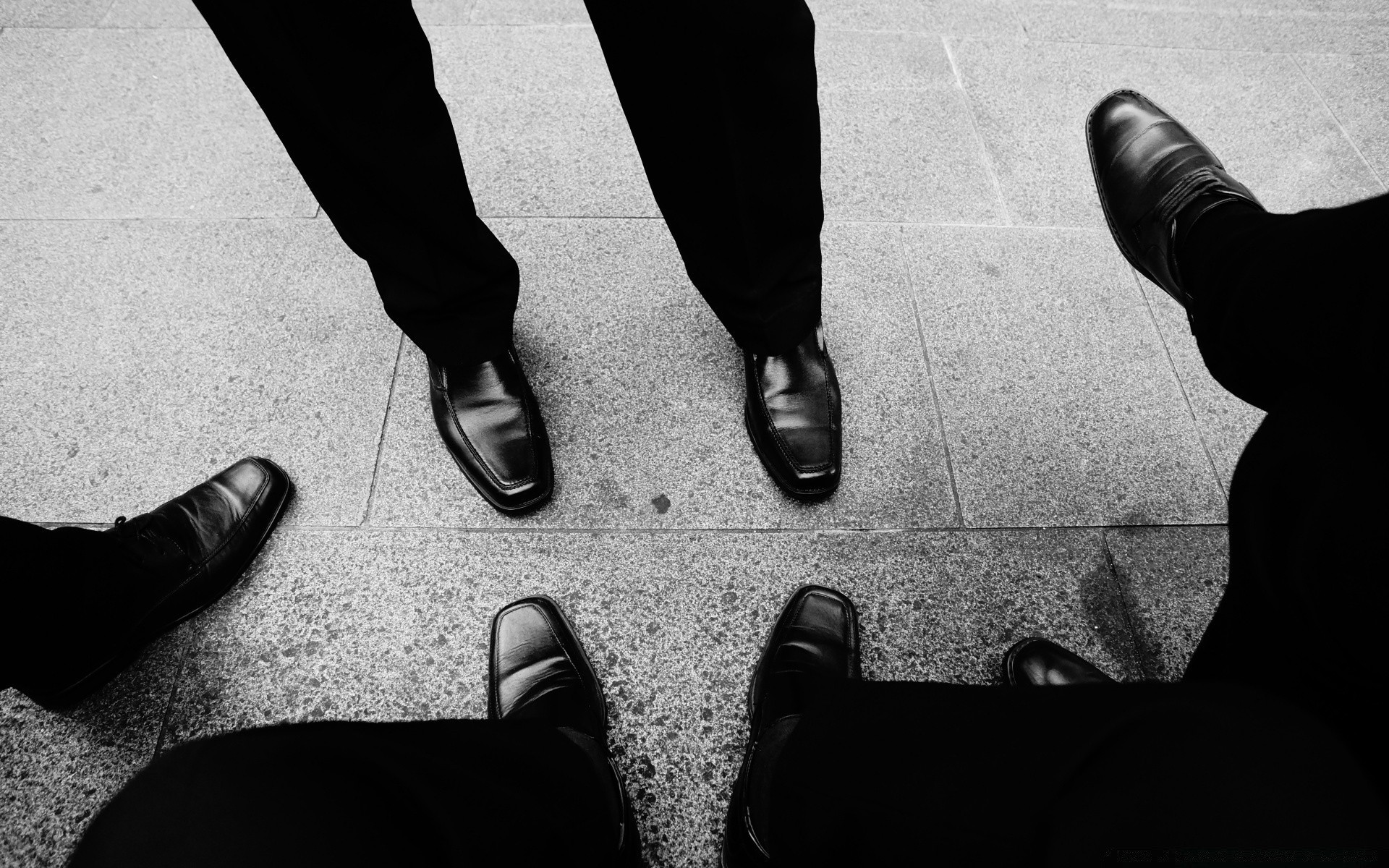 Foto en blanco y negro de un hombre adulto en el fondo de una valla