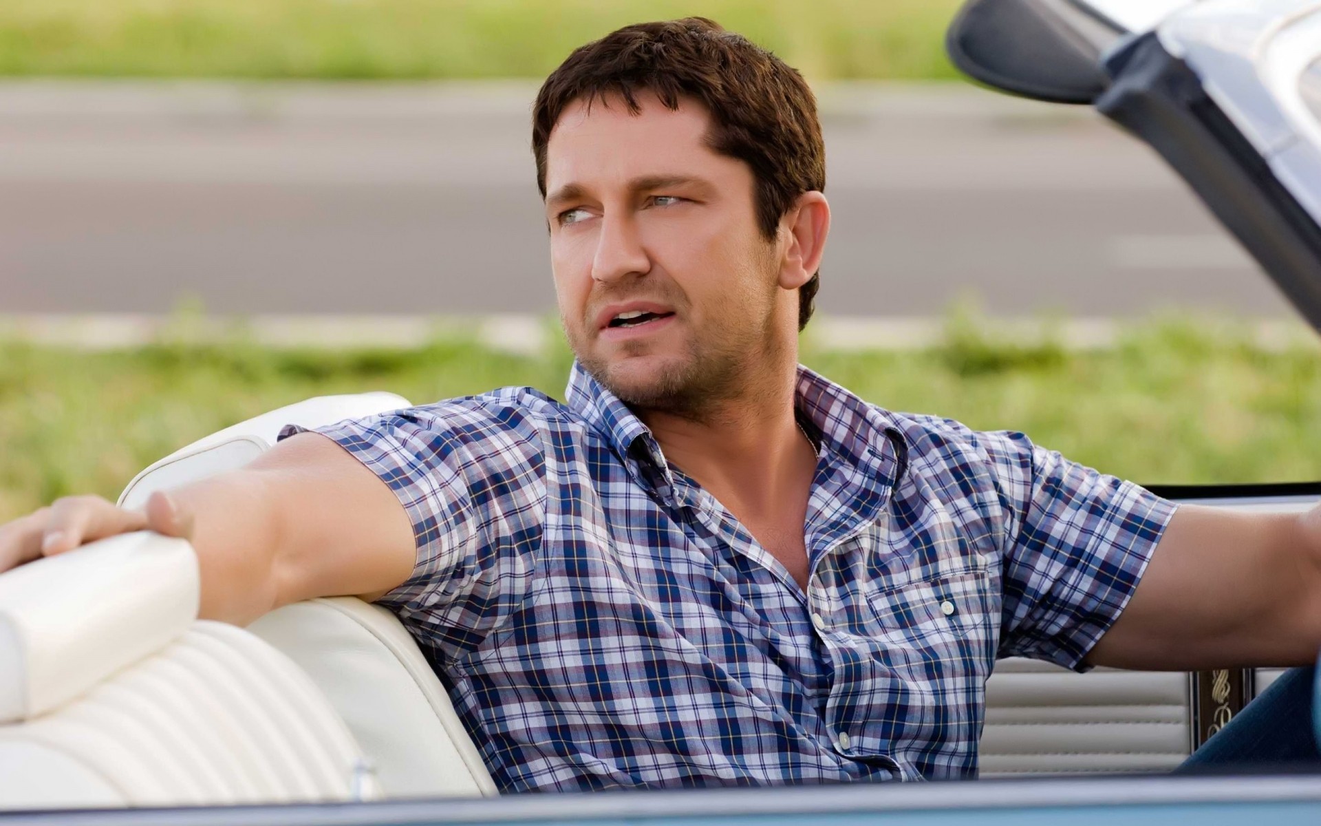 Un hombre seguro de sí mismo en un coche elegante