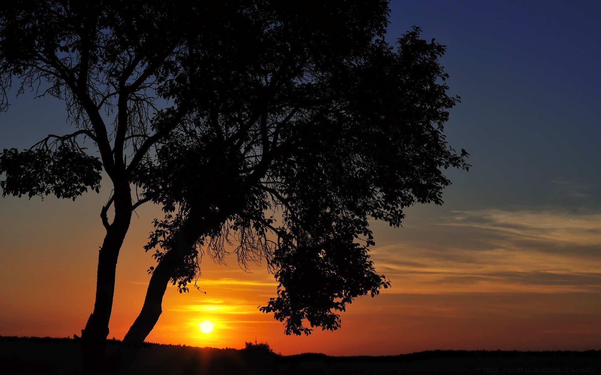 Árboles en el fondo de la puesta de sol de la tarde