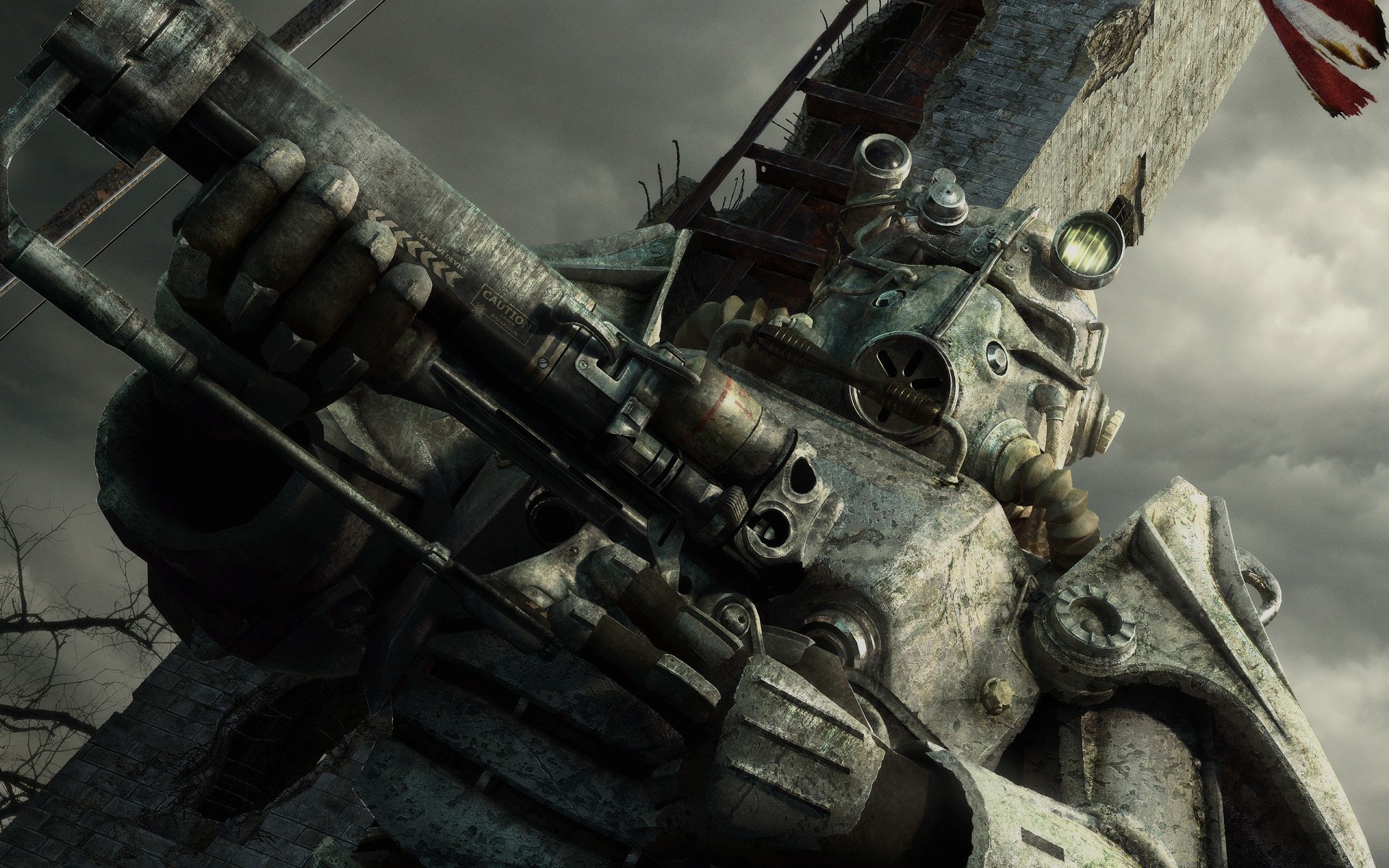 Fallout, una gigantesca máquina de combate robótica humanoide con armas en gallinas
