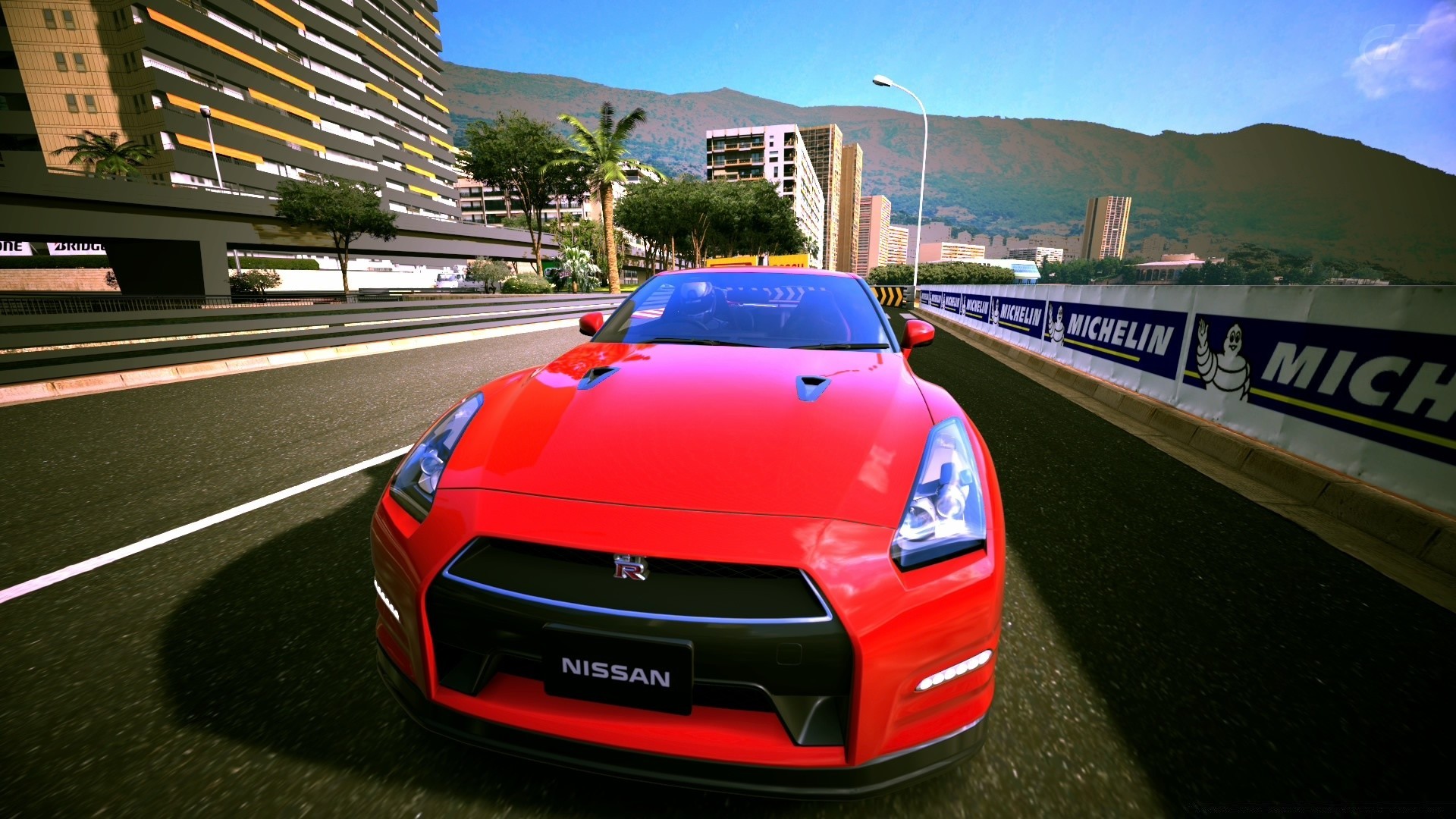 Coche deportivo rojo en la ciudad