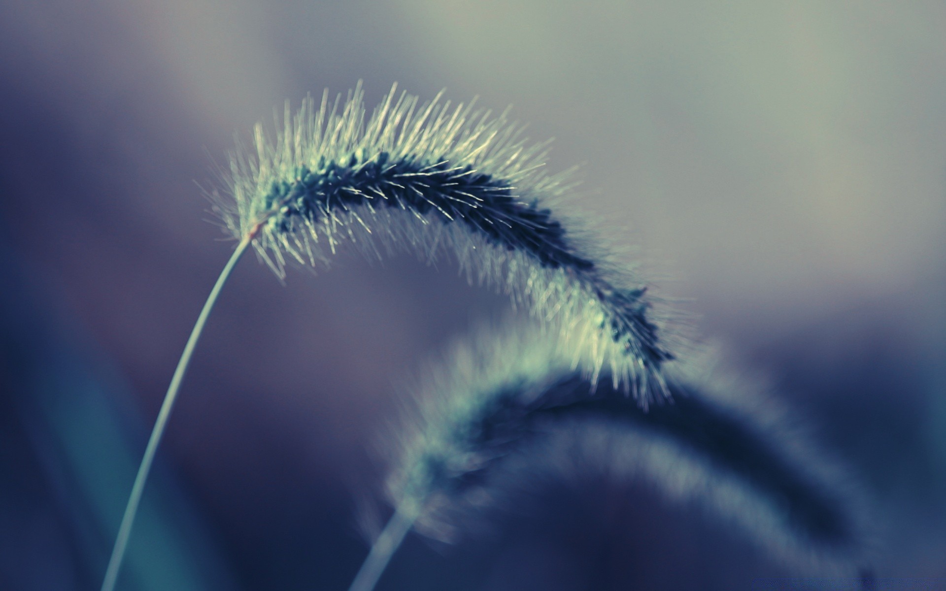 Macro espiguillas esponjosas sobre un fondo gris borroso