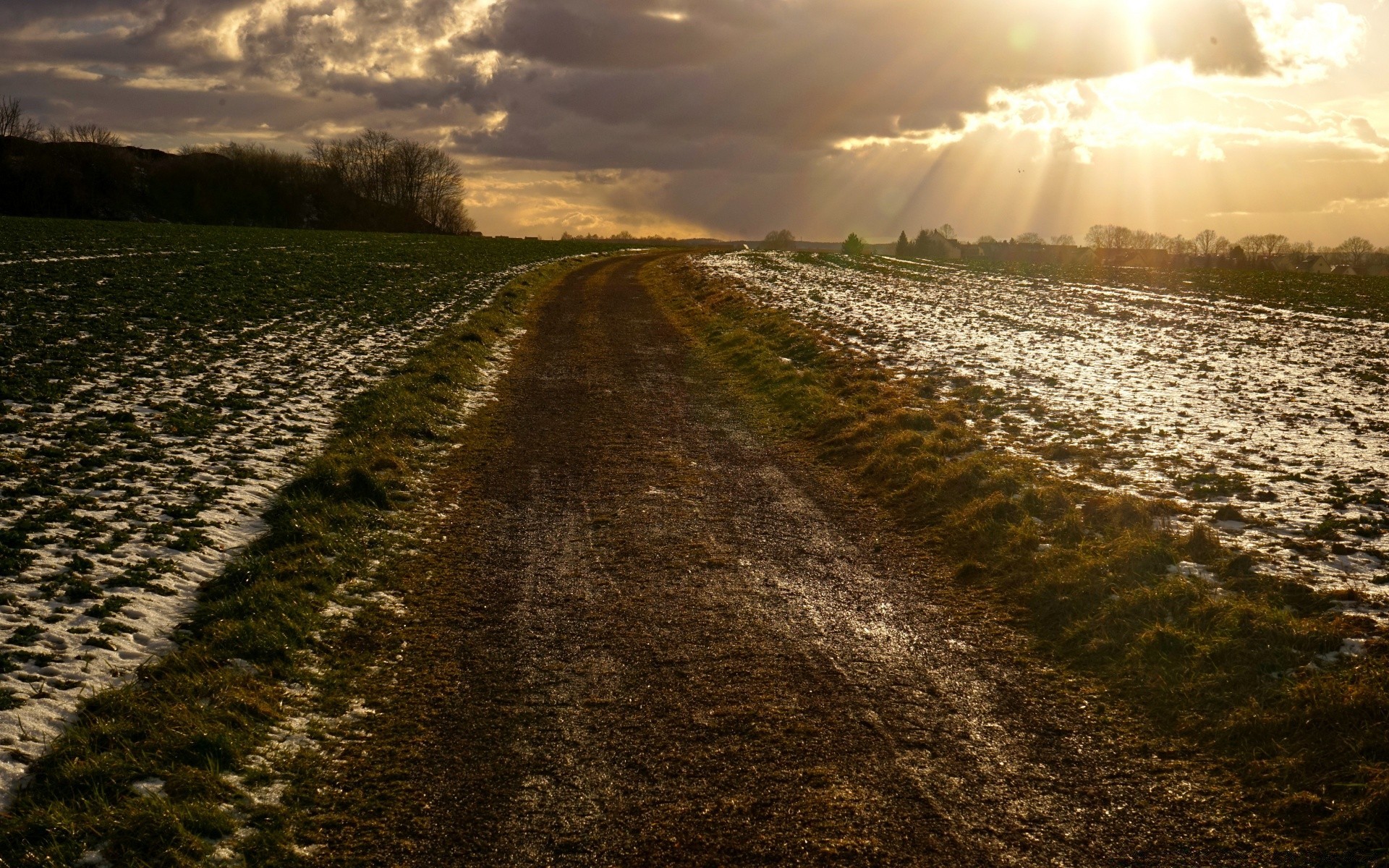 Una puesta de sol de primavera en el campo