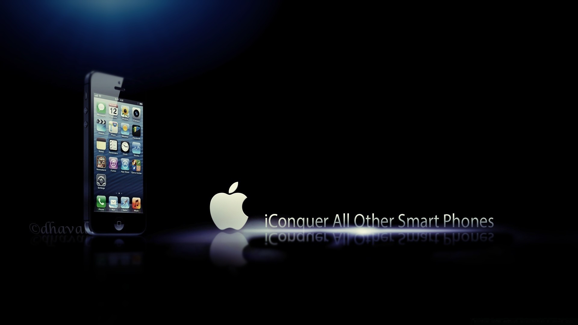 Logotipo de Apple en el fondo de la oscuridad y el Teléfono inteligente