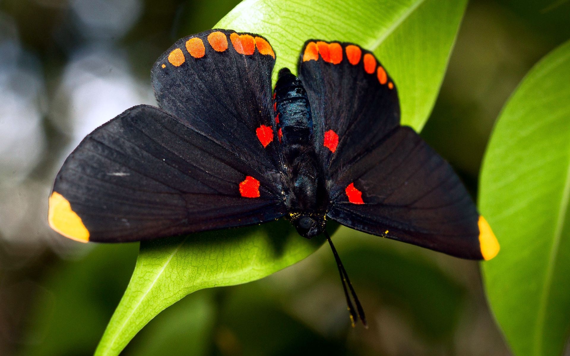 Mariposa negra con patrón rojo