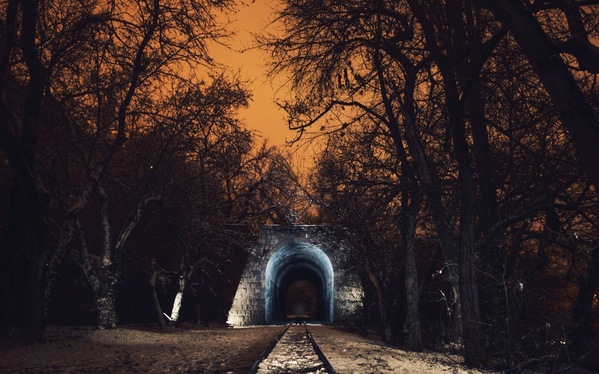 Amanecer de invierno en el bosque. Árboles sin hojas