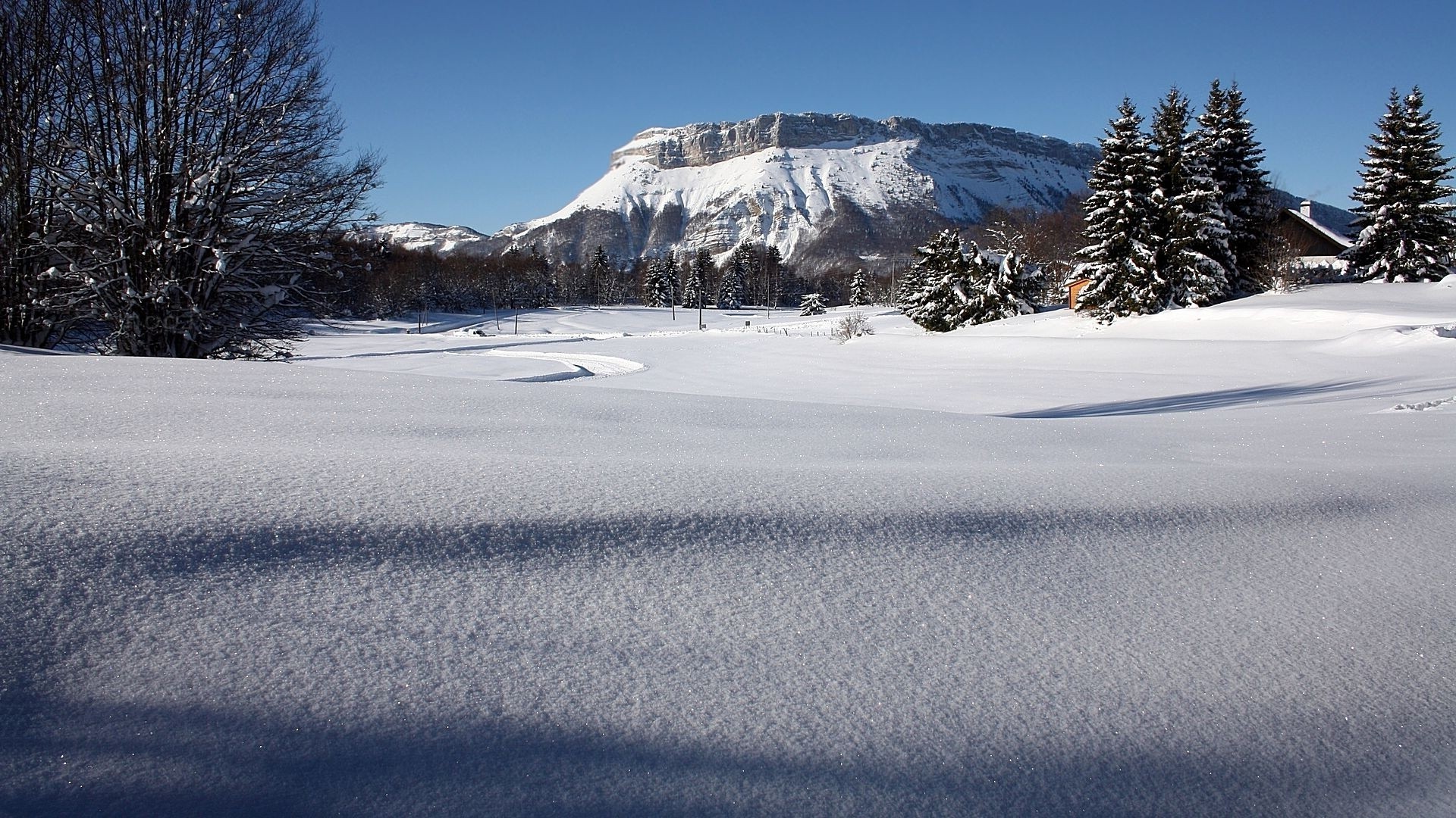 Puesta de sol sobre un enorme campo cubierto de nieve