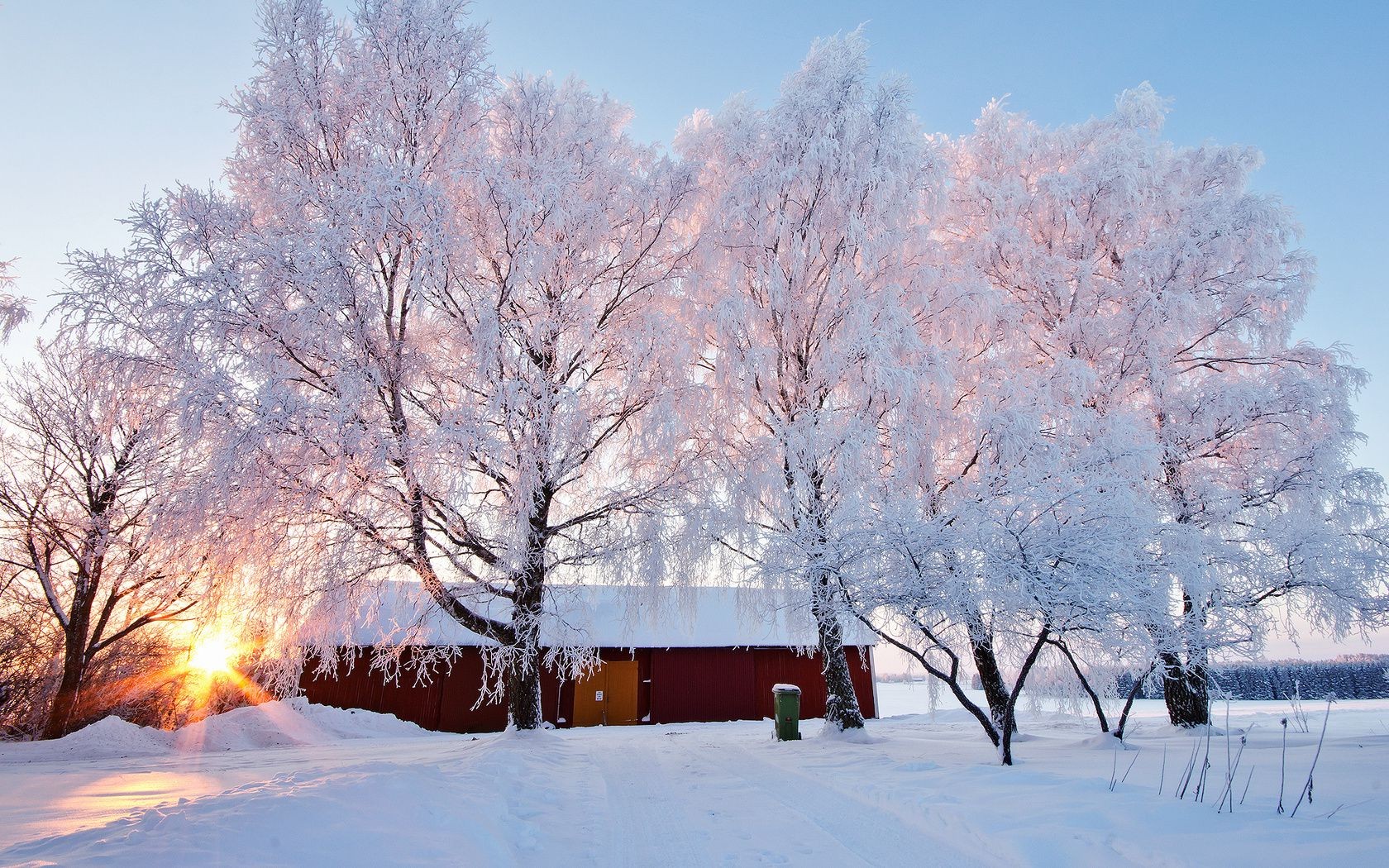 Puesta de sol sobre un enorme campo cubierto de nievePuesta de sol sobre un enorme campo cubierto de nieve