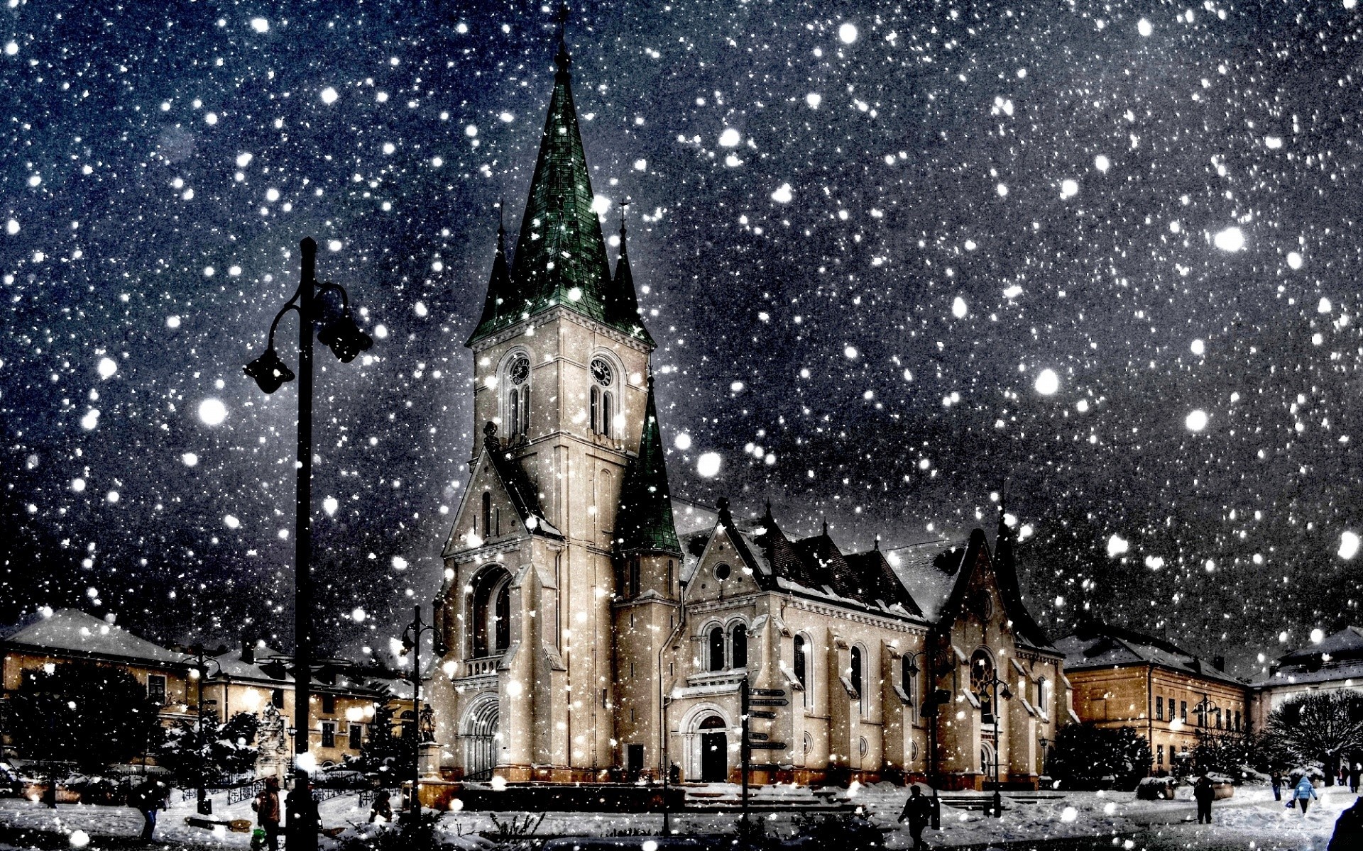 Tienda cubierta de nieve en el crepúsculo - vista trasera