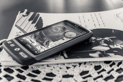 Tecnología digital en tamaño aumentado en el fondo de las montañasTecnología digital en Tamaño aumentado en el fondo de las montañas